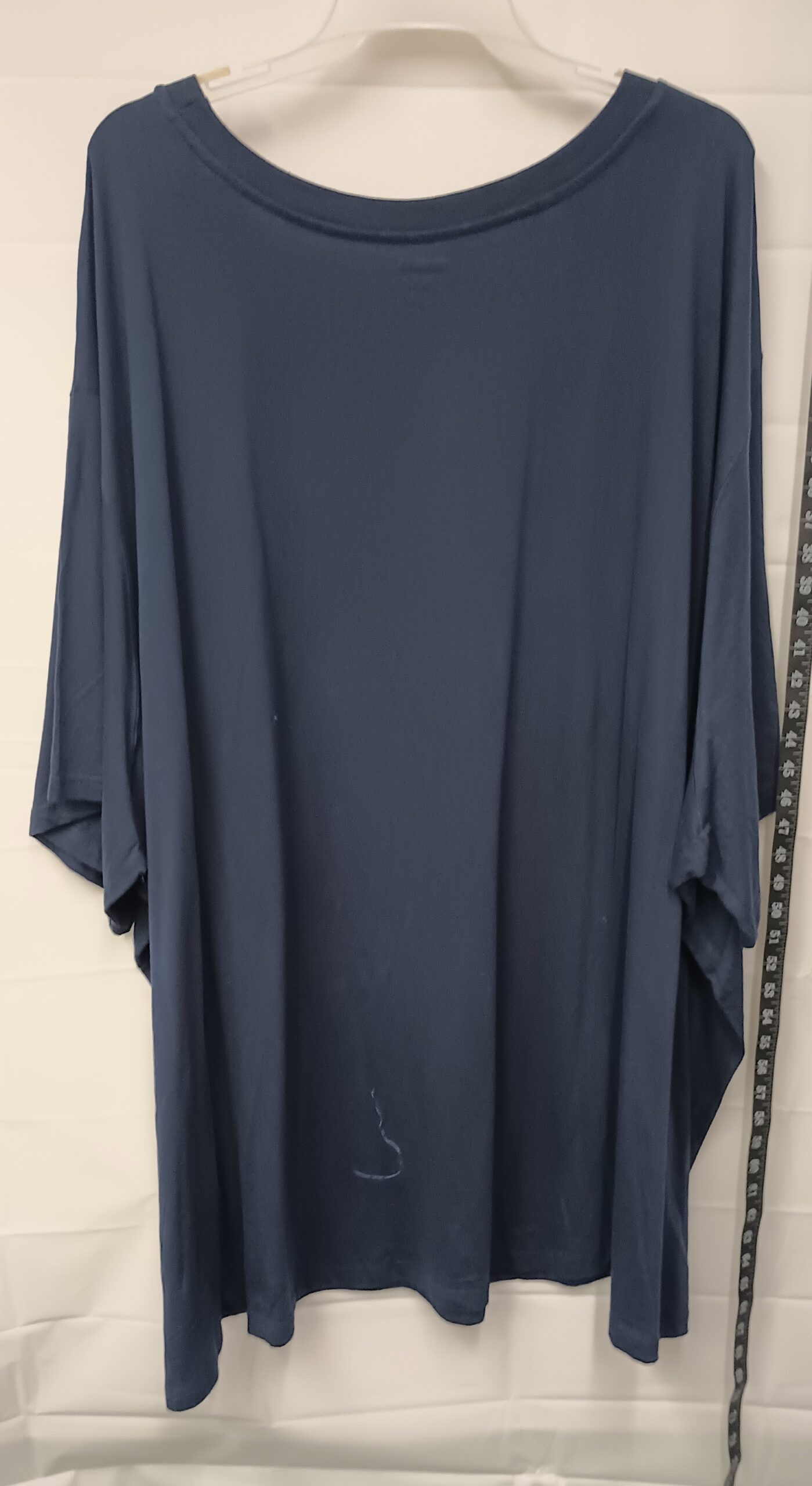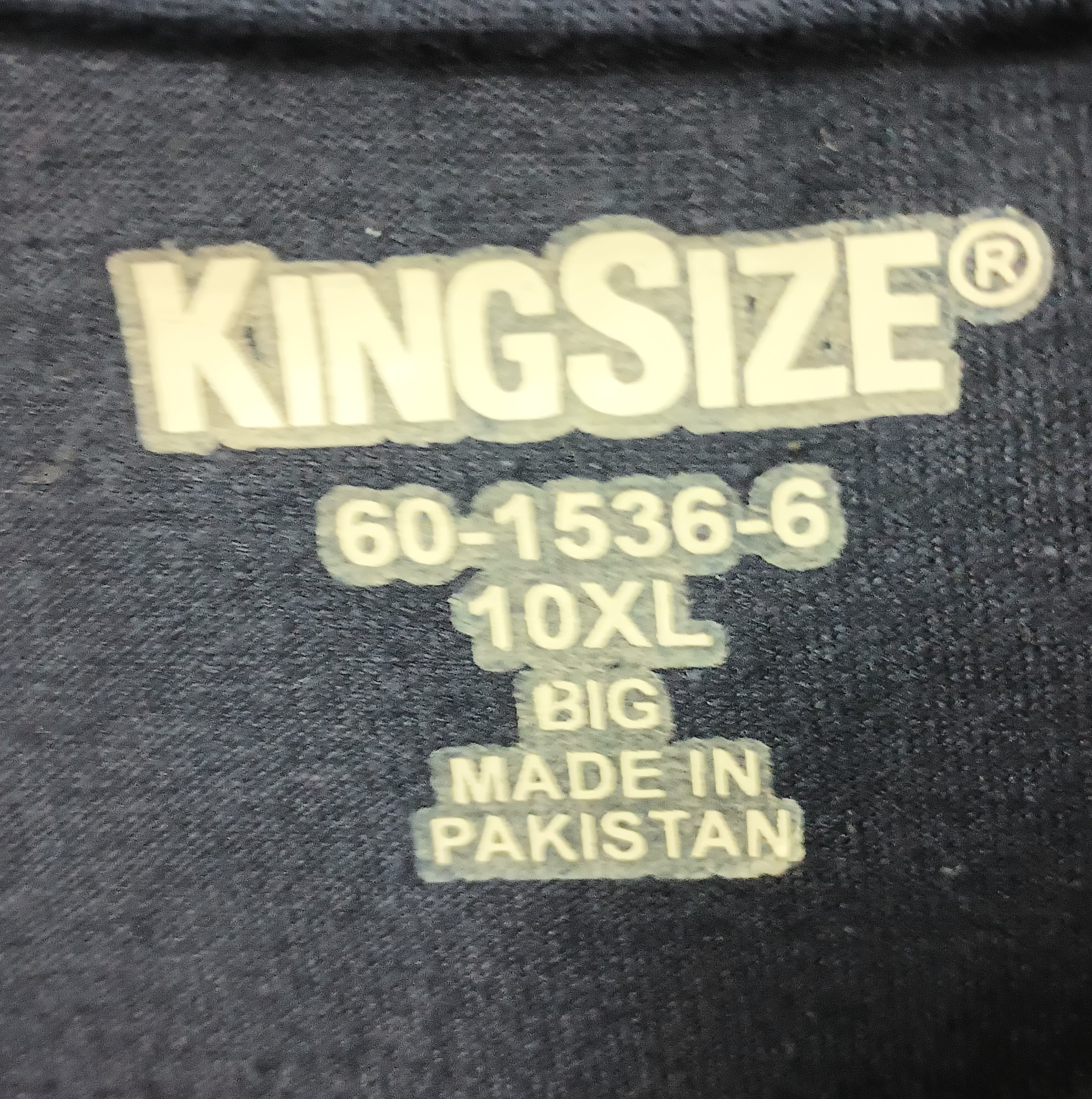 This new condition Kingsize t-shirt. Is navy blue and made of 100% cotton. It has no stretch and is a 10x. It is 41 inches from shoulder to waist and has one pocket on the chest.