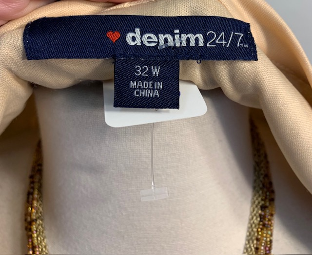 Jacket Sizing is in a 5X (32W), but would best fit a 4X (26W). Fabric is 100% polyester. Cami is a 5X, runs smaller.