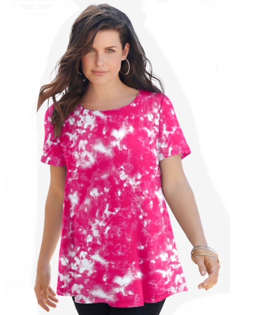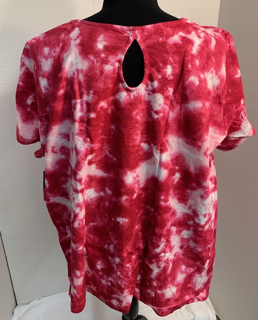 This AWESOME top is a pink acid tie die print, Fabric is made of 100% cotton and has good stretch! A pretty keyhole at the back of the neck dresses up the back of this shirt. Swing silhouette. Straight hem. This top wears and washes beautifully. To preserve it longer, do NOT dryer! Very flowy and not clingy!