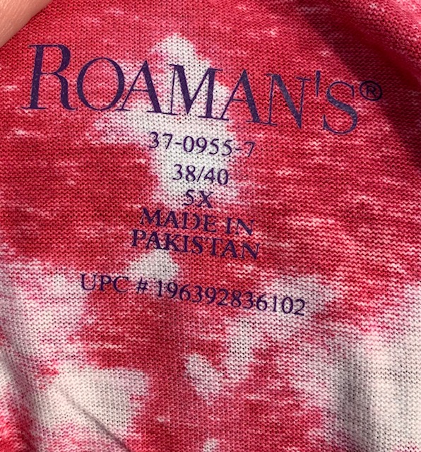 30″ Length makes it tunic length. 5X (38/40) does fit like a roomy 5X size in this style shirt.