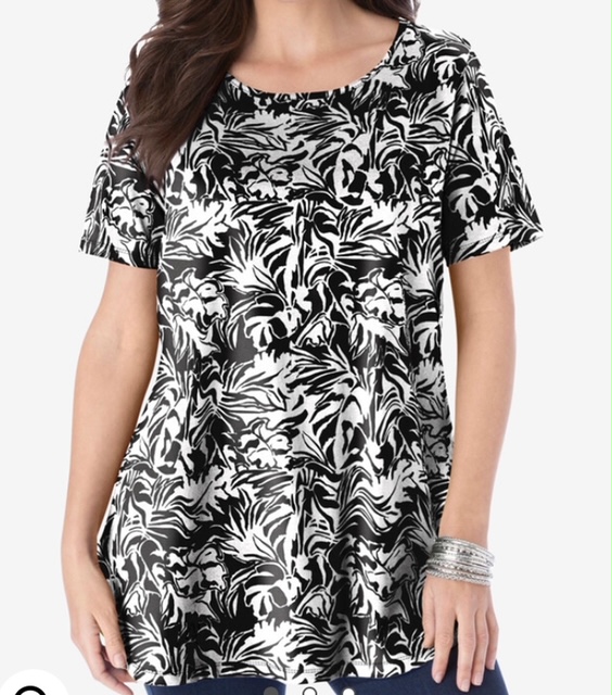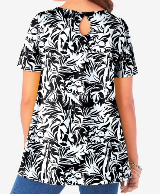 This swing style top is made in a pure cotton knit that wears and washes beautifully. There is a pretty keyhole at the back of the neck. Swing style silhouette that comfortably glides over your curves. Made of 100% pure cotton with moderate stretch.