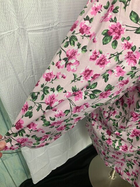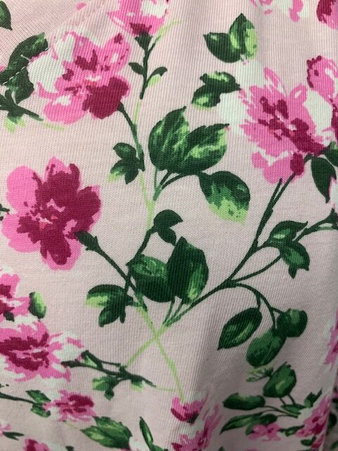 The color is the most soft and beautiful shade of lighter pink with all different shades of greens, darker pinks and white.