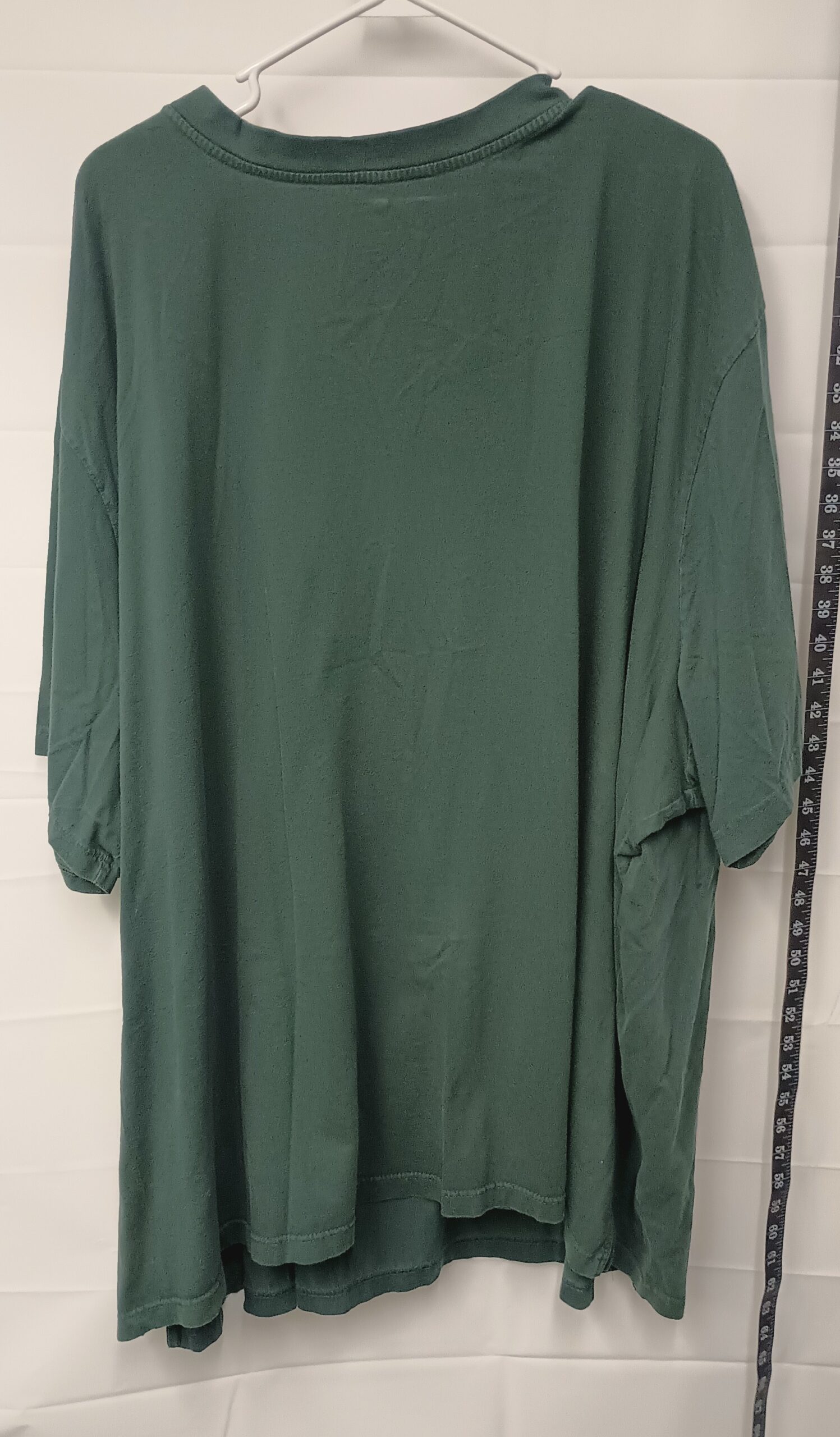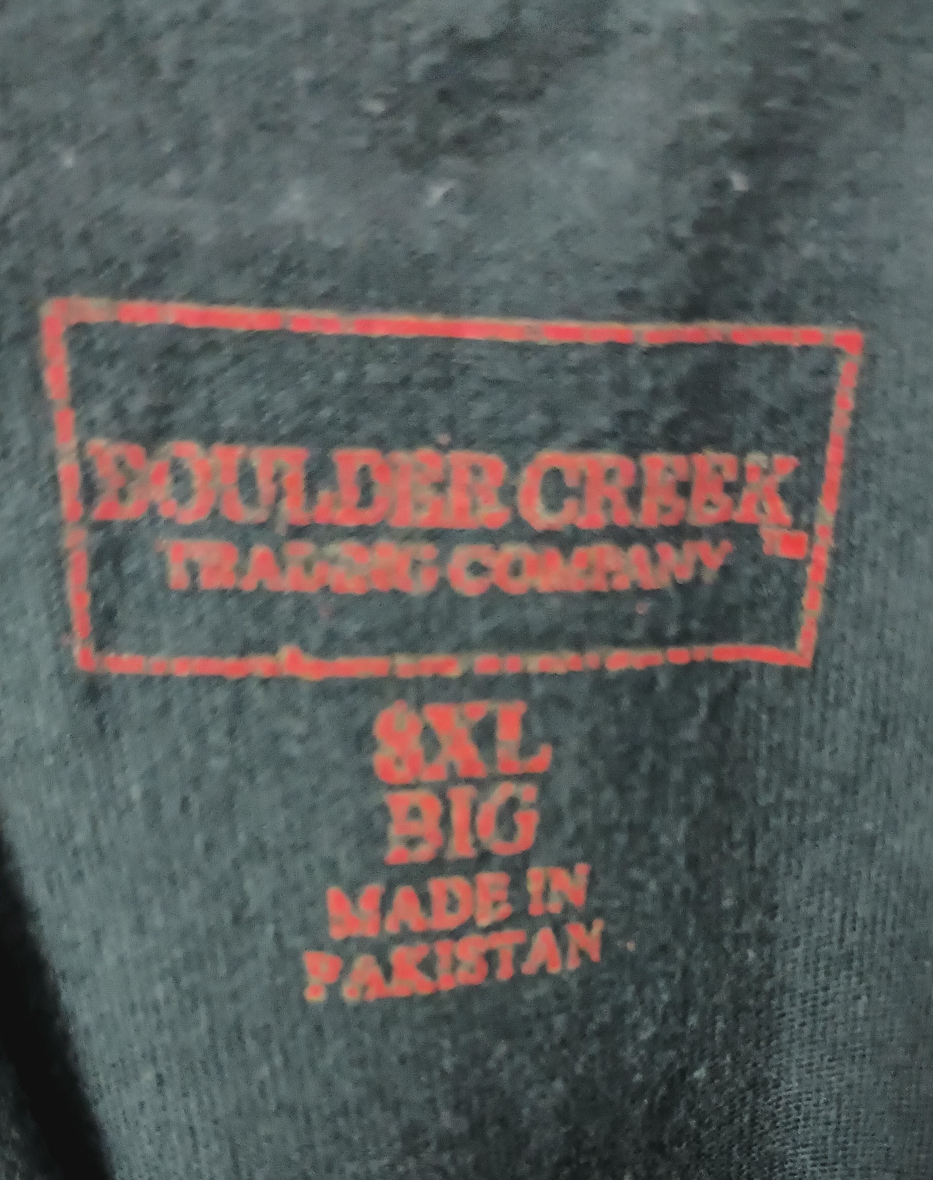 This new condition boulder creek polo t-shirt. Is a dark green and made of 100% cotton and has no stretch. It is an 8x and is 37 inches from shoulder to waist.